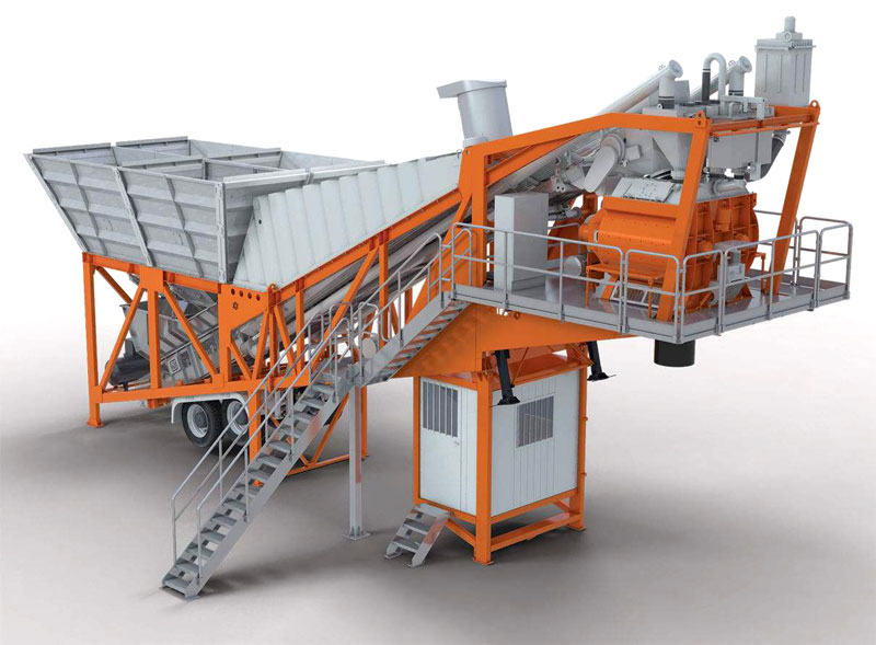 1.整套設(shè)備結(jié)構(gòu)緊湊,在一個(gè)拖掛單元上集中了混凝土生產(chǎn)的上料、稱(chēng)量、攪拌等工序;